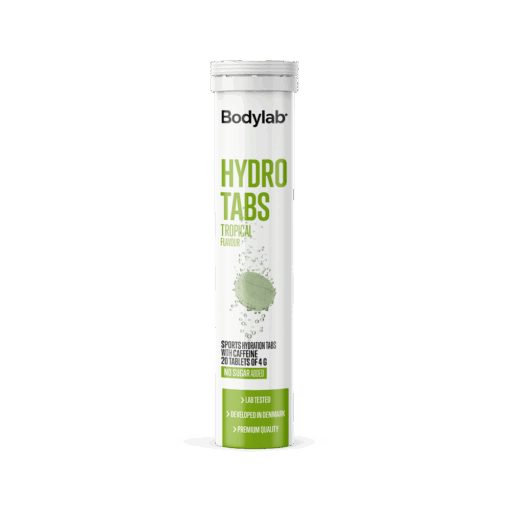 Med Bodylab Hydro Tabs kan du lett og bekvemt blande din egen sportsdrikk. Hver tablett inneholder, i tillegg til 75 mg ren koffein, en kombinasjon av vitaminer og mineraler (elektrolytter) som sikrer at sportsdrikken din har en rehydrerende effekt. Tablettene oppløses enkelt i vann og har en frisk smak av appelsin.