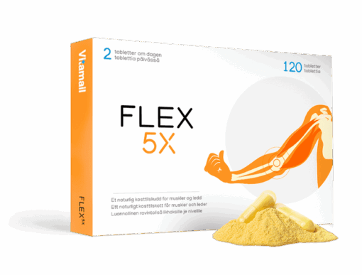 Flex5x er ikke bare et vanlig kosttilskudd; det er en helhetlig løsning for å støtte muskel- og leddhelse. Med en unik blanding av antiinflammatoriske ingredienser, kollagen, og essensielle vitaminer og mineraler, gir Flex5x kroppen din den nødvendige støtten for å holde deg aktiv og smertefri. Uansett alder eller aktivitetsnivå, kan Flex5x bidra til å opprettholde bevegelighet, redusere ubehag og støtte en sunn, aktiv livsstil.